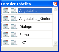 Um eine Tabelle oder ein Formular über das Fenster Liste der Tabellen zu wählen: