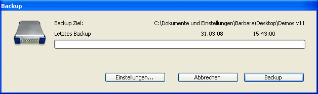 Mit diesem Befehl können Sie jederzeit ein Backup der Datenbank starten. Auf dem Bildschirm erscheint dann folgendes Dialogfenster:
