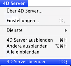 Wählen Sie unter Windows im Menü Datei, auf Mac OS im Menü 4D Server der Anwendung den Befehl Beenden.