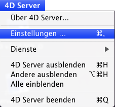 Hinweis: Auf Mac OS liegt der Befehl Einstellungen im Menü 4D Server der Anwendung.