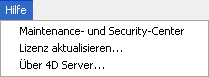Dieser Befehl öffnet das Fenster zum Aktivieren zusätzlicher Lizenzen in Ihrer 4D Umgebung. Weitere Informationen dazu finden Sie im Installationshandbuch.