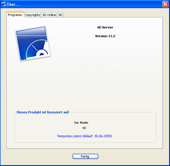 Hinweis: Auf Mac OS liegt der Befehl Über 4D Server im Menü 4D Server der Anwendung.