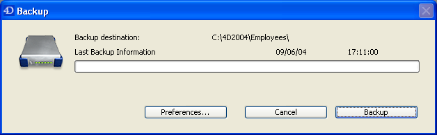 Este comando permite lançar um backup do banco de dados em qualquer momento. Quando você seleciona este comando, aparece a seguinte caixa de diálogo: