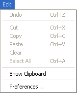 O menu Editar de 4D Server inclui os comandos padrão copiar/colar, o comando Exibir a prancheta, etc.