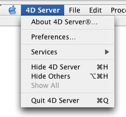 Nota: Em Mac OS X, o comando Sair está no menu 4D Server (menu aplicação).