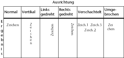Für jede Achse stehen die folgenden Ausrichtungen der Achsenbezeichnungen zur Verfügung: