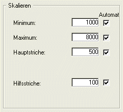 Für jede Option der Skala gibt es das Optionsfeld automatisch. Damit aktivieren Sie die Standardeinstellung von 4D Chart. Wollen Sie eigene Werte verwenden, müssen Sie das jeweilige Optionsfeld deaktivieren. Sonst werden die individuell eingetragenen Werte nicht berücksichtigt.