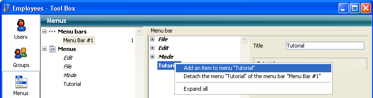 4. Right click on the title “Tutorial” and choose Add an item to menu "Tutorial":