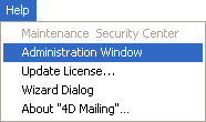 • Choose the Administration Window command from the Help menu or click on the corresponding button in the 4D tool bar:
