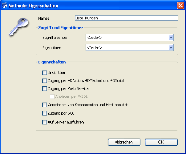 Das Attribut "Auf Server ausführen" können Sie im Dialogfenster Methodenauswahl-Eigenschaften und Methode-Eigenschaften festlegen: