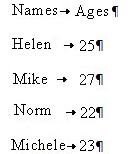 | Names | Ages |