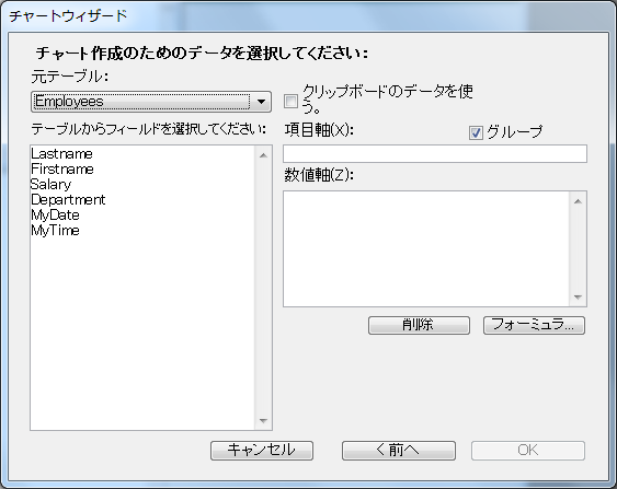 データベースに保存されたデータをもとにしてグラフを作成するには: