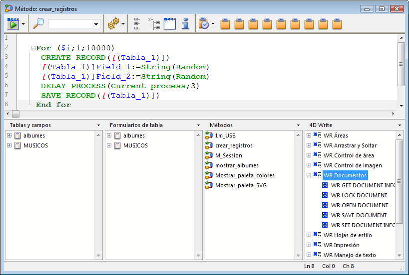 4D v13Comandos en el editor de métodos |