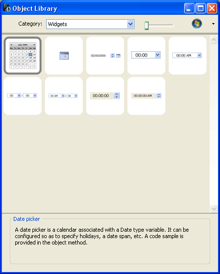 Os widgets 4D são funcionalidades oferecidas como componentes, acessíveis desde o editor de formulários e a livraria de objetos configurados. Estes widgets são objetos compostos com características predefinidas que facilitam o acesso as funcionalidades padrão e são muito simples de implementar.