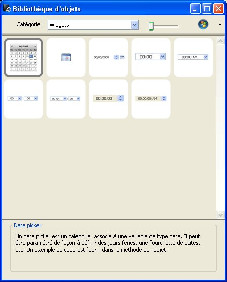 Pour insérer un widget via la bibliothèque d'objets :