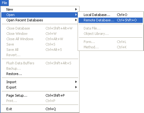 Se não aparece esta caixa de diálogo, escolha o comando Abrir>Base de dados remota... no menu Arquivo de 4D: