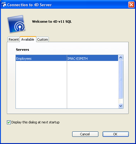 - Se não está seguro sobre o uso da caixa de diálogo de conexão, consulte a seção Conexão a um banco de dados 4D Server.
