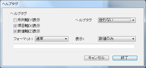 - ヘルプタブ (常時, 使わない, 要求時): このパラメーターを使用していつグラフのヒントを表示するか指定します。