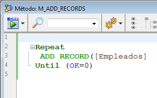3. Introduzca el código del método M_ADD_RECORDS como se muestra a continuación: