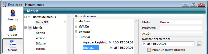 8. Haga clic en el comando de menú “Añadir registros...” y seleccione “M_ADD_RECORDS” en el combo box Nombre del método.
