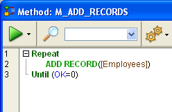 8. Faça clique no comando de menu “Adicionar registros...” e selecione “M_ADD_RECORDS” na caixa de combinação Nome do método.