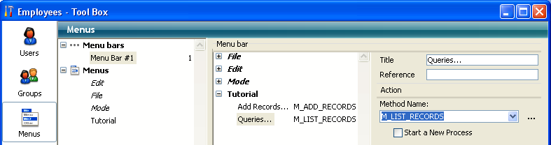 Nesta seção, você desenhará dois métodos e uma barra de menus personalizada. Em resumem, irá criar uma aplicação 4D.