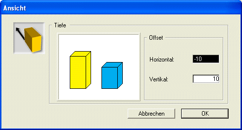 Um die Illusion von Tiefe in einem zweidimensionalen Diagramm zu ändern oder zu entfernen, wählen Sie im Menü Diagramm>Ansicht. Auf dem Bildschirm erscheint das Dialogfenster Ansicht:
