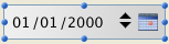En exécution, les boutons situés à droite de la zone de saisie ne s’affichent que lorsque l’objet a le focus. L’utilisateur sélectionne individuellement chaque élément de la date (jour, mois ou année) via un clic ou la touche Tabulation et peut le faire défiler en utilisant le stepper numérique ou les touches fléchées du clavier. L’icône calendrier situé à droite permet de sélectionner une date par l’intermédiaire d’un pop up calendrier DatePicker.