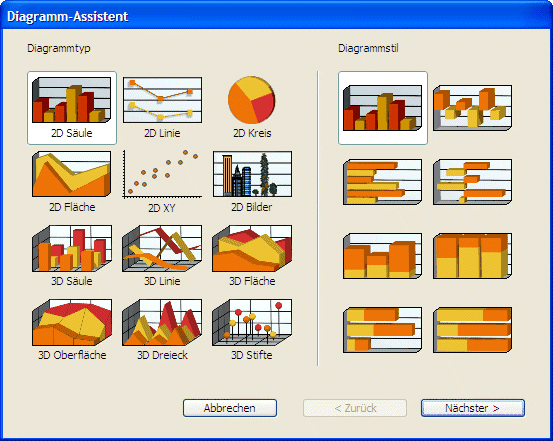 Auf dem Bildschirm erscheint der Diagramm-Assistent: