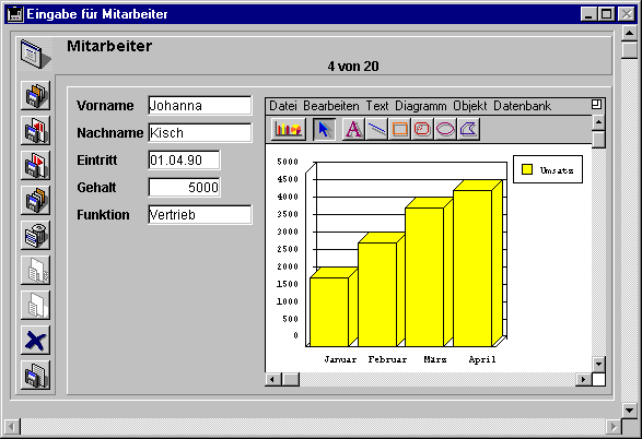 Sie können einen Diagrammbereich in ein Eingabeformular einfügen und ein Diagramm in jedem Datensatz der Tabelle ablegen.