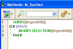 9. Klicken Sie auf den Menübefehl “Suchen”und wählen im Bereich Methodenname “M_Suchen”.