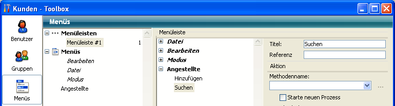 Auf dem Bildschirm erscheint der Menüeditor mit der Standard Menüleiste.