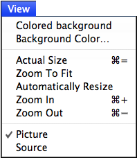 A janela do visualizador tem duas páginas, acessíveis através dos botões Imagem e Origem ou o menu Apresentação: