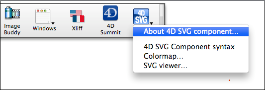 - Se você tem instalado 4D Pop faça clique no botão SVG e escolher o comando SVG Component syntax na paleta do componente 4D Pop, se está utilizando (ver a continuação).