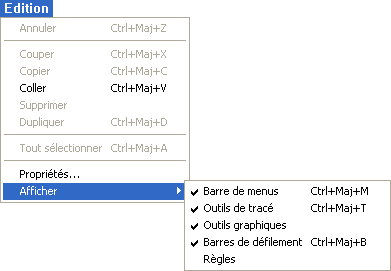 Le sous-menu qui apparaît contient les différentes fonctions que vous pouvez afficher ou cacher. Les éléments cochés sont affichés dans la fenêtre. - Cochez ou désélectionnez les éléments que vous souhaitez afficher ou cacher.
