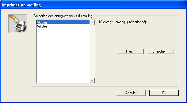 Vous pouvez imprimer les enregistrements que vous venez de sélectionner. - Cliquez sur OK dans la boîte de dialogue de sélection des enregistrements du mailing.