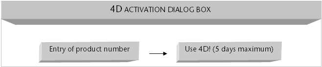 - Emergency Activation: This mode can be used for special temporary activation of 4D (5 days maximum) without connecting to the 4D Internet site. This activation can only be used one time.