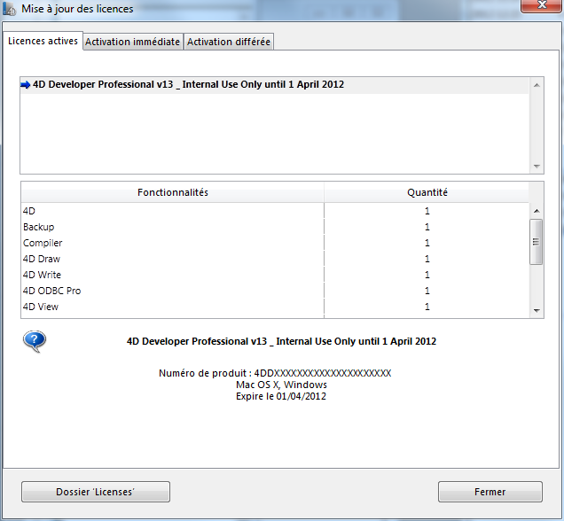 - Windows XP : {disque}:\Documents and Settings\All Users\Application Data\4D\Licenses