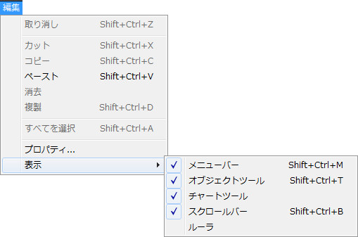 - 4D Chartの編集メニューから表示メニューをポイントします。