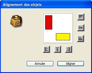 Utilisez les icônes de la boîte de dialogue pour aligner les objets sélectionnés, les uns par rapport aux autres.