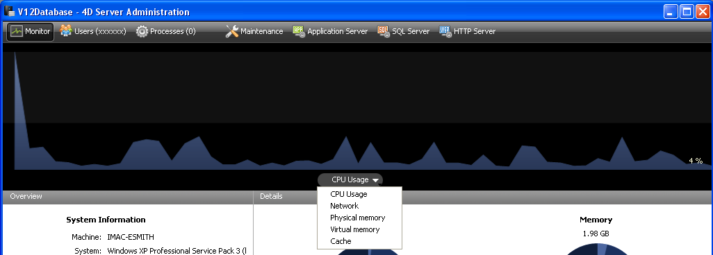 • 物理メモリ: 4D Serveが使用する、マシンのRAMの量。