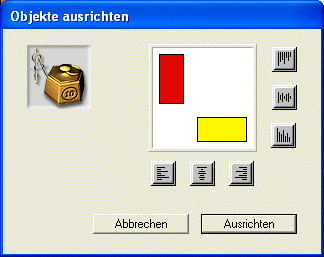 Über das Menü Objekt>Anordnung können Sie Objekte ausrichten. Die Vorschau zeigt die Auswirkung der gewählten Aktion: