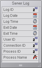 PROCESS PROPERTIES([Server Log]Process ID;$vsProcName;$vlProcState;$vlProcTime)