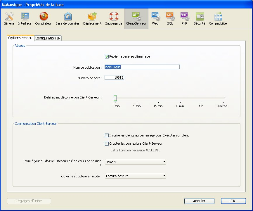 - lorsque l’option est cochée (par défaut), la base est rendue publique, elle apparaît dans la liste des bases publiées (page TCP/IP).