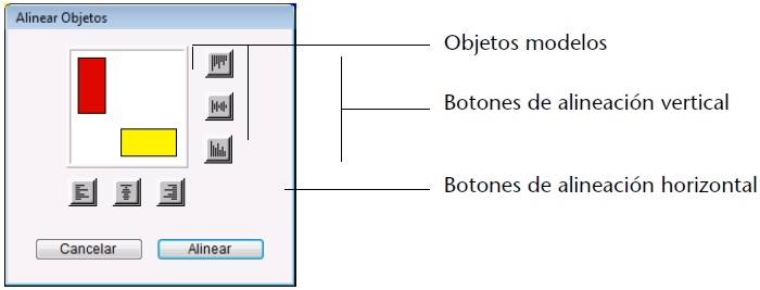 Utilice los iconos en la caja de diálogo para alinear los objetos seleccionados.