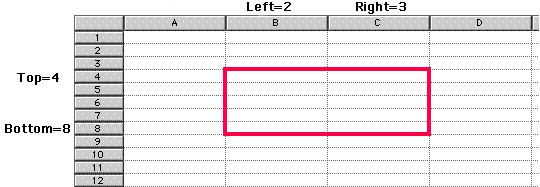 O comando PV SET RANGE BORDER aplica o tipo de borde definido por PV SET BORDER STYLE a faixa de células definido pelos parâmetros esquerda, superior, direita e inferior: