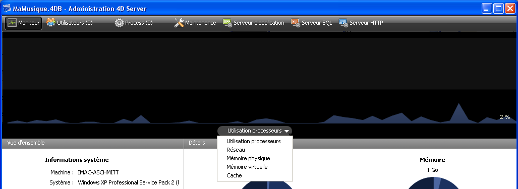 Le taux d’occupation par 4D Server peut également être affiché dynamiquement dans la zone graphique.