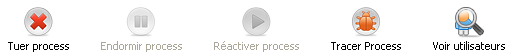 La page comporte cinq boutons de commande permettant d’agir sur le ou les process sélectionné(s). A noter que vous ne pouvez agir que sur les process utilisateurs.