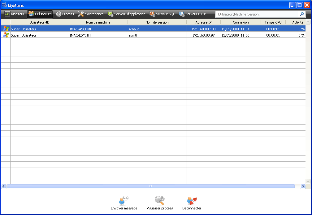 • Activité : Ratio du temps que 4D Server consacre à cet utilisateur (affichage dynamique).