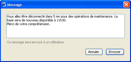 Lorsque vous cliquez sur le bouton, une boîte de dialogue apparaît, vous permettant saisir le message. La boîte de dialogue indique le nombre d’utilisateurs qui recevront le message ;